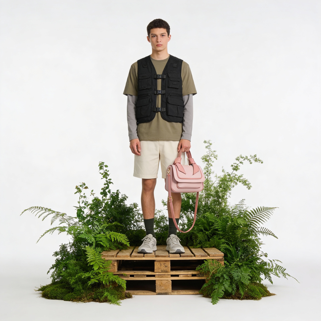 - Design: Structured rectangular silhouette with contrast panel detailing for a sophisticated style.