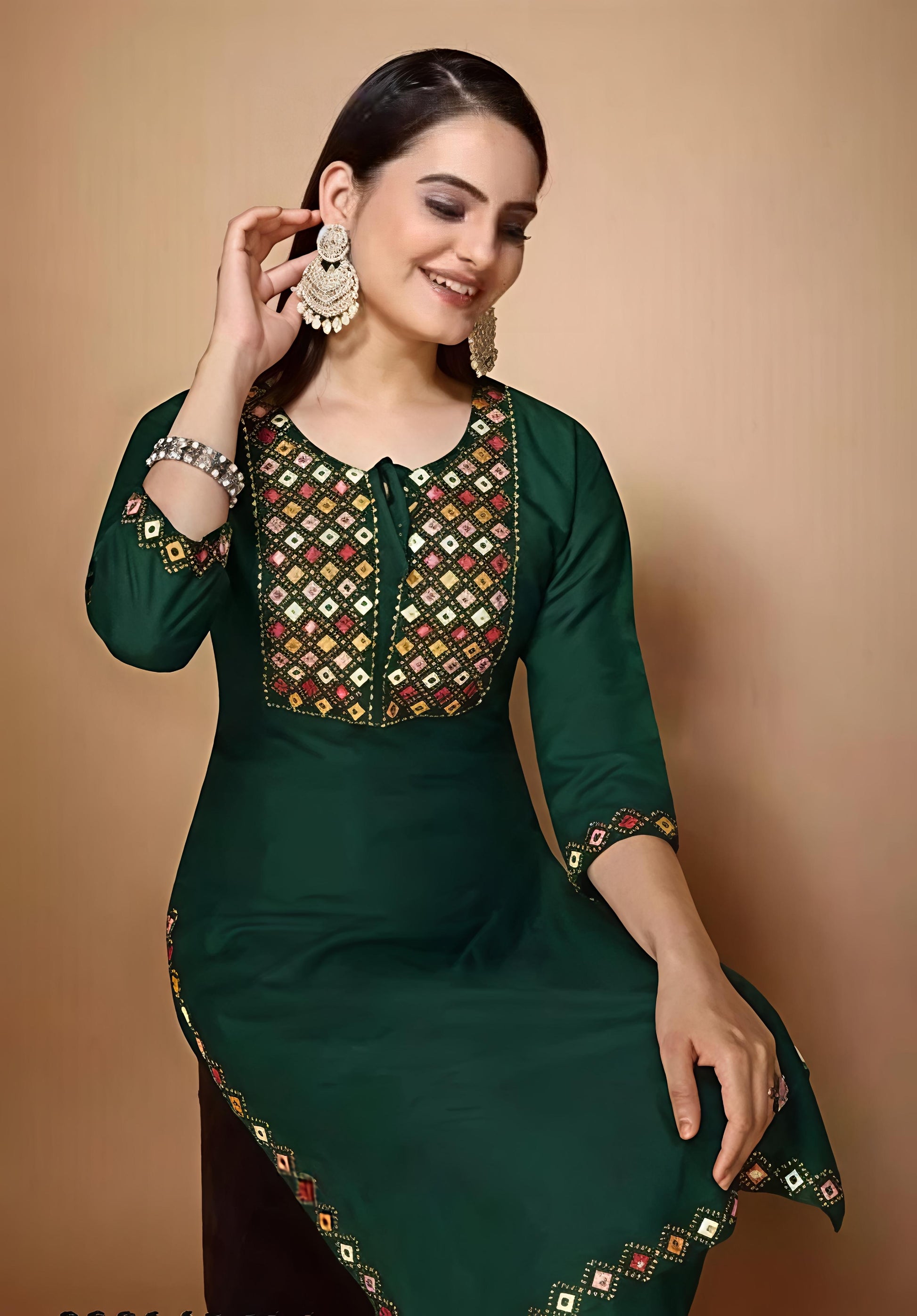 Women’s Embroidered Green kurta Palazzo set with dupatta